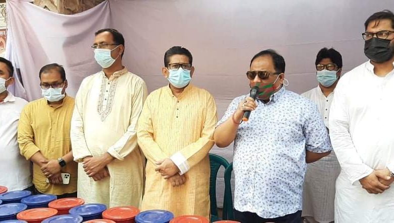 আজ ৫ এপ্রিল সোমবার দুপুর ২টায় সংগঠনের সভাপতি নির্মল রঞ্জন গুহ বলেন, আমরা বিশ্ব মানবতার জননী শেখ হাসিনার নির্দেশে অসহায় কর্মহীন মানুষের মাঝে খাদ্য ও মাস্ক বিতরণ কার্যক্রম শুরু করেছি। লকডাউন চলাকালে অসহায় কর্মহীন মানুষের পাশে দাঁড়াতে বিত্তবানদের প্রতি আহ্বান জানান তিনি।