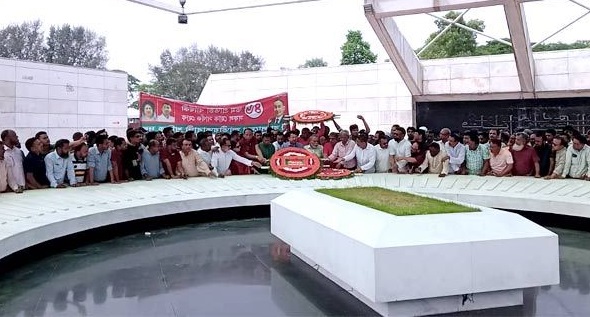শুক্রবার (২ মে) সকালে ফুল দিয়ে শ্রদ্ধা জানান শ্রমিক দলের কেন্দ্রীয় ও মহানগর নেতারা।