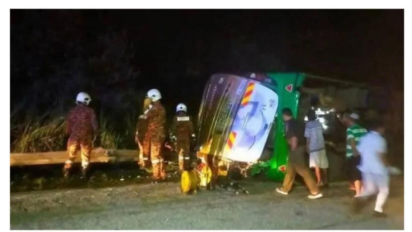 স্থানীয় সময় সোমবার (৯ জুন) ভোর রাতে মালয়েশিয়ার পেরাক রাজ্যে সীমান্ত এলেকায়, থাইল্যান্ড বর্ডারে এ দুর্ঘটনা ঘটে। দুর্ঘটনার সংবাদ পেয়ে এক ঘণ্টার মধ্যে ঘটনাস্থলে পৌঁছায় স্থানীয় ফায়ার এন্ড রেসকিউ স্টেশনের ৪ সদস্যের একটি দল।