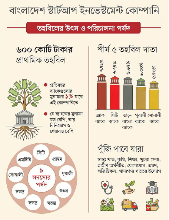 * বিশেষায়িত কোম্পানিটির নাম বাংলাদেশ স্টার্টআপ ইনভেস্টমেন্ট কোম্পানি বা বিএসআইসি।
