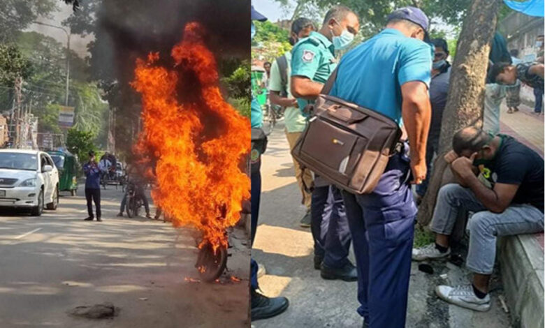 আজ বৃহস্পতিবার দুপুরের দিকে পলাশীতে, মামলায় বিরক্ত হয়ে নিজের ডিসকভারি মোটরসাইকেলে আগুন দেন চালক ইলিয়াস মিয়া।