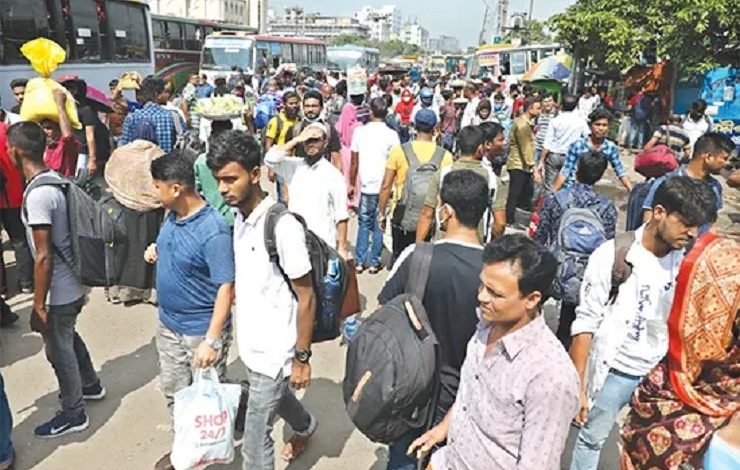 কমলাপুর-সদরঘাটে ঢাকামুখী মানুষের ভিড়