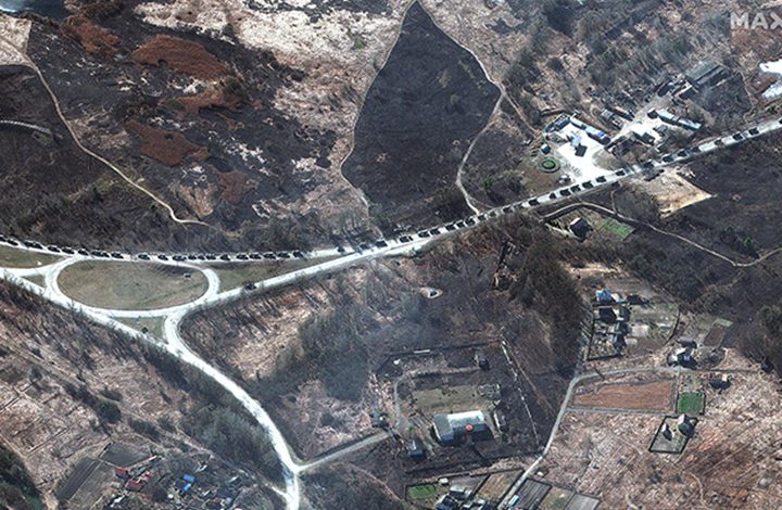 ওই বহরটিতে কয়েকশ সামরিক যান রয়েছে এবং তারা ইউক্রেনের রাজধানী কিয়েভের উত্তরে ইভানকিভ শহরের কাছাকাছি আছে বলে জানিয়েছে ম্যাক্সার।
