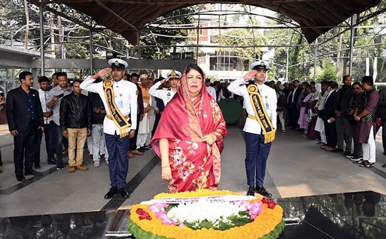 জাতীয় সংসদের স্পিকার ড. শিরীন শারমিন চৌধুরী দ্বাদশ জাতীয় সংসদের স্পিকার হিসেবে পুনঃনির্বাচিত হওয়ায় জাতির পিতা বঙ্গবন্ধু শেখ মুজিবুর রহমানের প্রতিকৃতিতে পুষ্পার্ঘ্য অর্পণের মাধ্যমে শ্রদ্ধা নিবেদন করেন।