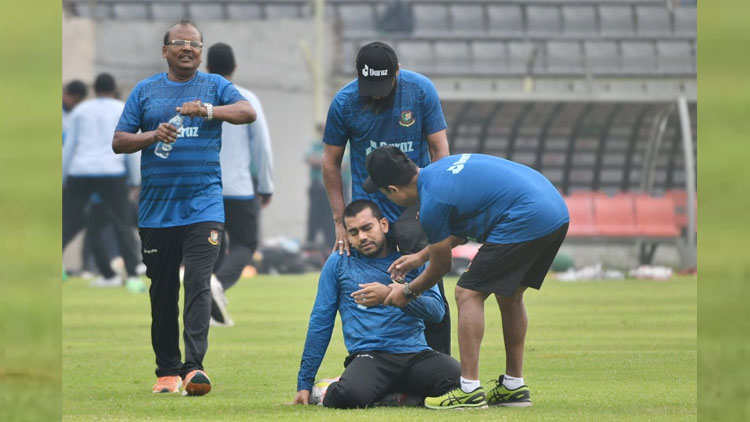 বিসিবির প্রধান চিকিৎসক দেবাশীষ চৌধুরী জানিয়েছেন, ‘ওর চোখে ফুটবল লেগেছে। আমরা ওর সিটি স্ক্যান করেছি। রিপোর্ট ভালো এসেছে। এখন দেখি চোখের চিকিৎসক কী বলেন।’