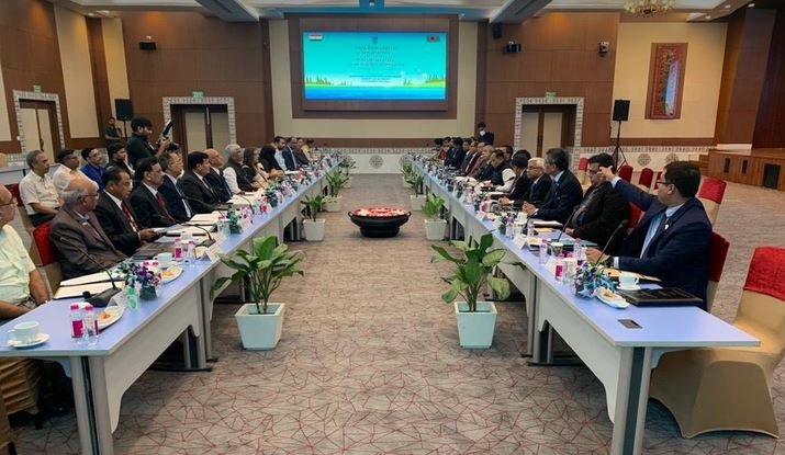 বাংলাদেশের পানি সম্পদ মন্ত্রণালয়ের উপমন্ত্রী এ কে এম এনামুল হক শামীম বৈঠকে অংশ গ্রহণ করছেন।