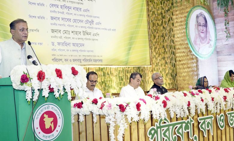 সোমবার দুপুরে রাজধানীর আগারগাঁওয়ে বঙ্গবন্ধু আন্তর্জাতিক কনভেনশন সেন্টারে ৫ জুন বিশ্ব পরিবেশ দিবস উপলক্ষে পরিবেশ, বন ও জলবায়ু পরিবর্তন বিষয়ক মন্ত্রণালয় আয়োজিত আলোচনা সভায় প্রধান অতিথির বক্তৃতায় তিনি এ কথা বলেন।