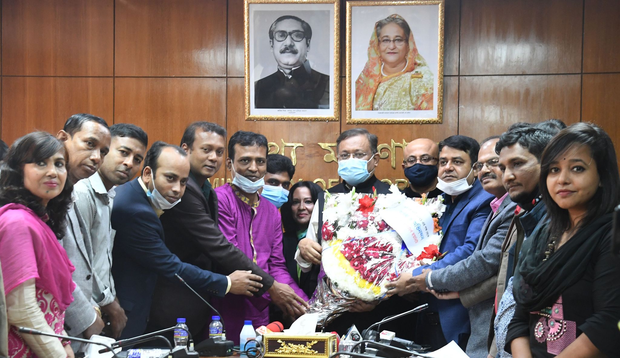 তথ্য প্রতিমন্ত্রী ডা. মুরাদ হাসান এসময় উপস্থিত ছিলেন। ডিআরইউ সভাপতি মুরসালিন নোমানী ও সাধারণ সম্পাদক মসিউর রহমান খান এসময় নিজেদের পরিচিতি তুলে ধরেন ও মন্ত্রীকে ফুলেল শুভেচ্ছা জানান।