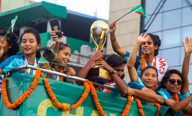 উল্লেখ্য যে, নারী ফুটবল দল সেপ্টেম্বরে নেপালের কাঠমান্ডুতে অনুষ্ঠিত সাফ চ্যাম্পিয়নশিপে অপরাজিত চ্যাম্পিয়ন হয়েছে। সেমিফাইনালে ভুটানকে বিধ্বস্ত করার পর ফাইনালে বাংলাদেশের মেয়েরা স্বাগতিক নেপালকে ৩-১ গোলে হারিয়ে প্রথমবারের মতো দক্ষিণ এশিয়ার শ্রেষ্ঠত্ব অর্জন করে।