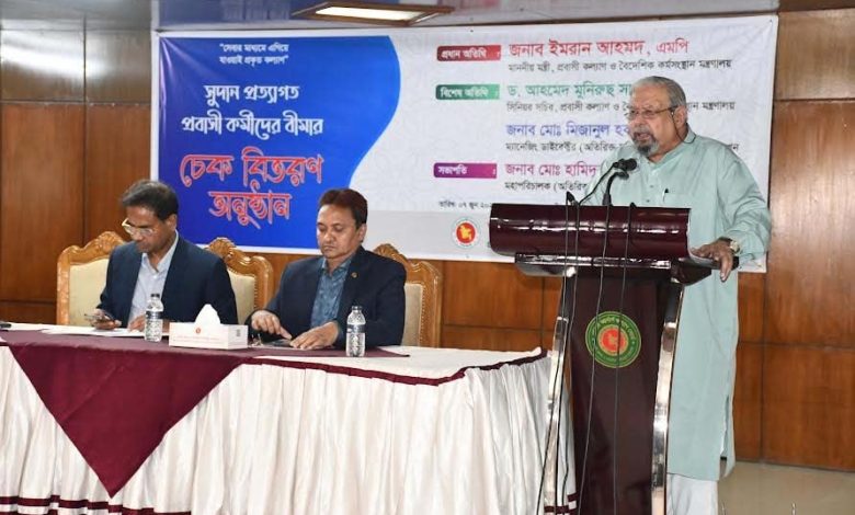 ইমরান আহমদ আজ বুধবার দুপুরে রাজধানীর ইস্কাটনস্থ প্রবাসী কল্যাণ ভবনের বিজয়-’৭১ হলে সুদান প্রত্যাগত সে-সব কর্মীর মাঝে বীমার চেক বিতরণ অনুষ্ঠানে প্রধান অতিথির বক্তৃতায় এসব কথা বলেন।