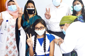 গত ১ নভেম্বর রাজধানীর মতিঝিল আইডিয়াল স্কুলের নবম শ্রেণির দুই শিক্ষার্থীকে টিকা দেওয়ার মধ্য দিয়ে বাংলাদেশে ১২-১৭ বছর বয়সী শিক্ষার্থীদের টিকাদান কার্যক্রম শুরু হয়েছিলো।