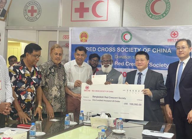 রাষ্ট্রদূত রেডক্রস সোসাইটি অব চায়না’র পক্ষ থেকে বাংলাদেশে বন্যার্তদের সহায়তার জন্য এক লাখ মার্কিন ডলার অনুদান দেয়।