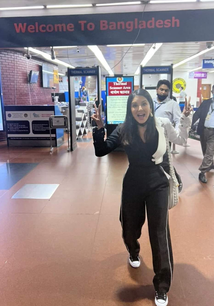 সেখানে দেখা যায়, তিনি ঢাকার বিমানবন্দরে। তার পেছনে লেখা রয়েছে ‘ওয়েলকাম টু বাংলাদেশ’। ছবিটির ক্যাপশনে সানি লিওন লেখেন, ‘এই সুন্দর দেশটিতে এসে খুব খুশি আমি।’