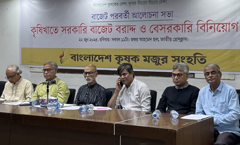জাতীয় বাজেটে জনগণের খাদ্যনিরাপত্তা ও পুষ্টি নিশ্চিতে কৃষিখাতে বরাদ্দ বাড়ানোর দাবি জানিয়েছে বাংলাদেশ কৃষক মজুর সংহতি।
