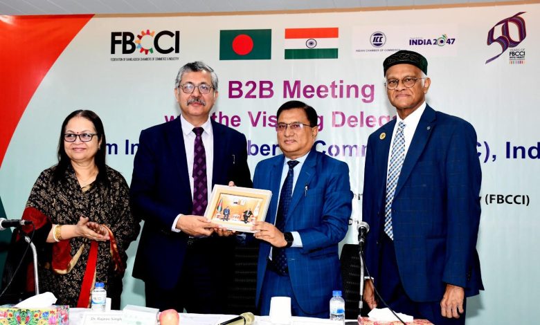 ব্যবসায়ীদের শীর্ষ সংগঠন বাংলাদেশ শিল্প ও বণিক সমিতি ফেডারেশন (এফবিসিসিআই) এবং ইন্ডিয়ান চেম্বার অব কমার্স (আইসিসি) এর মধ্যে বিটুবি (বিজনেস টু বিজনেস) বৈঠক অনুষ্ঠিত হয়েছে। বৈঠকে দুই দেশের ব্যবসায়ীরা বাণিজ্যিক সম্পর্ক জোরদার করার বিষয়ে আগ্রহ প্রকাশ করেন।