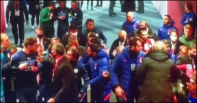 ম্যানচেস্টার সিটি আর অ্যাটলেটিকো মাদ্রিদের ম্যাচে ঝগড়া, হাতাহাতি এমনকি মারামারি টানেল পর্যন্ত পৌঁছায়। এরপর পুলিশের হস্তক্ষেপে পরিস্থিতি ঠাণ্ডা হয়।