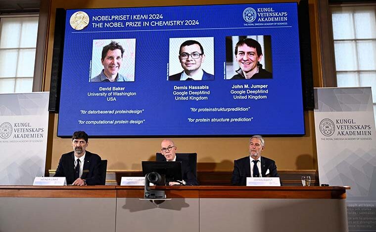 রয়্যাল সুইডিশ একাডেমি অফ সায়েন্সেস মার্কিন বিজ্ঞানী ডেভিড বেকার এবং ব্রিটিশ বিজ্ঞানী ডেমিস হাসাবিস ও জন এম. জাম্পারকে ২০২৪ সালের রসায়নে নোবেল পুরস্কার দেওয়ার সিদ্ধান্ত ঘোষণা করেছে।