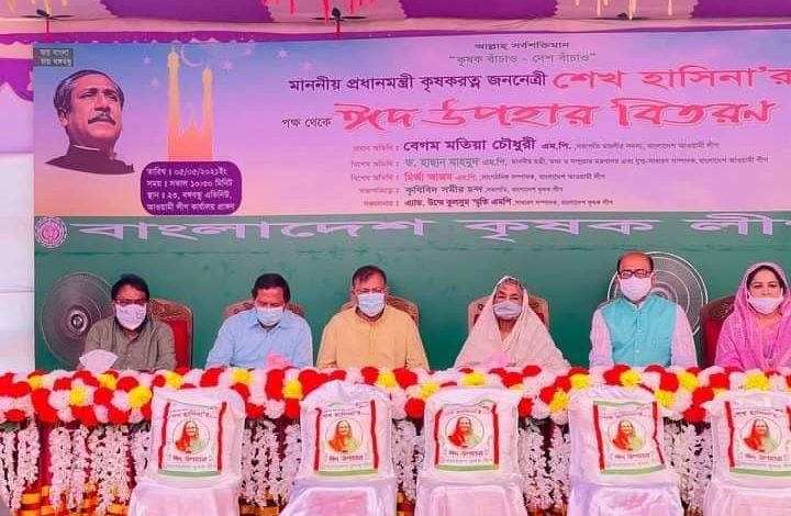 বিশেষ অতিথি হিসেবে আওয়ামী লীগের সাংগঠনিক সম্পাদক মির্জা আজম এমপি, কৃষক লীগের সাধারণ সম্পাদক উম্মে কুলসুম স্মৃতি এমপি, হোসনে আরা এমপি, শামীমা শাহরিয়ার এমপি, কৃষকলীগের সহসভাপতি শেখ জাহাঙ্গীর আলম প্রমুখ কৃষক লীগ নেতা বিশ্বনাথ সরকারের সঞ্চালনায় এসময় বক্তব্য রাখেন। অনুষ্ঠানে স্বাস্থ্যবিধি অনুসরণ করে প্রায় পাঁচশত পরিবারের হাতে ঈদ উপহার সামগ্রী তুলে দেন অতিথিবৃন্দ।