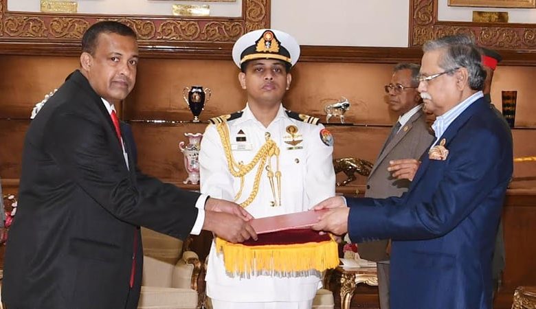 এর আগে, বঙ্গভবনে পৌঁছালে প্রেসিডেন্ট গার্ড রেজিমেন্টের (পিজিআর) একটি চৌকস অশ্বারোহী দল অনুষ্ঠানের অংশ হিসেবে রাষ্ট্রদূতদের ‘গার্ড অব অনার’ প্রদান করে।
