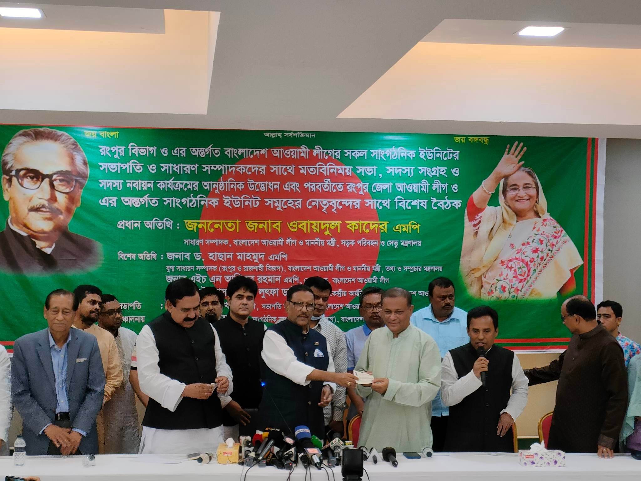 আওয়ামী লীগের সভাপতিমন্ডলীর সদস্য শাজাহান খানের সভাপতিত্বে ও সাংগঠনিক সম্পাদক সুজিত রায় নন্দীর সঞ্চালনায় দলের সাধারণ সম্পাদক সড়ক পরিবহন ও সেতুমন্ত্রী ওবায়দুল কাদের অনুষ্ঠানে প্রধান অতিথির বক্তব্য রাখেন এবং রংপুর বিভাগের সন্তান হিসেবে প্রধানমন্ত্রীর তথ্য ও যোগাযোগ প্রযুক্তি বিষয়ক উপদেষ্টা সজীব ওয়াজেদ জয়ের সদস্য পদ নবায়নের মধ্য দিয়ে অনুষ্ঠানে কার্যক্রমের সূত্রপাত হয়।