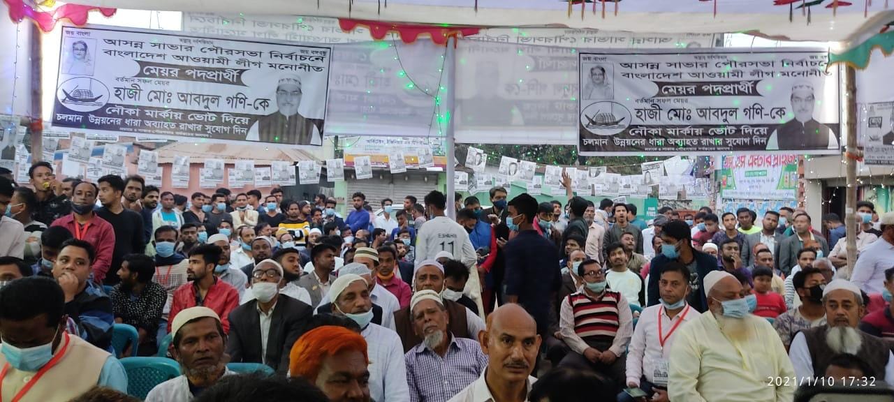 আসন্ন সাভার পৌরসভা নির্বাচন উপলক্ষে পৌরসভার ৬ নং ওয়ার্ডের সবুজবাগ এলাকায় আওয়ামী লীগ মনোনীত মেয়র পদপ্রার্থী আলহাজ্ব মোঃ আবদুল গনি’র নৌকা মার্কার সমর্থনে ঢাকা জেলা উত্তর স্বেচ্ছাসেবক লীগ আয়োজিত নির্বাচনী জনসভা ও প্রচারণায় অংশ নেন বাংলাদেশ আওয়ামী স্বেচ্ছাসেবক লীগ সভাপতি নির্মল রঞ্জন গুহ ও সাধারণ সম্পাদক আফজালুর রহমান বাবু সহ কেন্দ্রীয় নেতৃবৃন্দ।