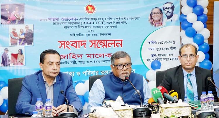 সংবাদ সম্মেলনে কালাজ¦র নির্মূলে বিশে^ প্রথম দেশ হিসেবে স্বীকৃতি লাভ ও ফাইলোরিয়া মুক্ত বাংলাদেশ প্রসঙ্গে স্বাস্থ্যমন্ত্রী বলেন, কালাজ¦রে প্রতি বছর বিশে^র প্রায় ১০০টি দেশের মানুষ আক্রান্ত হয়। এটি একটি প্রাণঘাতি রোগ। প্রতি বছর কালাজ¦রে বিশে^র ৫০ হাজার থেকে ৯০ হাজার মানুষ আক্রান্ত হয়। কালাজ¦রে আক্রান্ত হয় এমন ১০০টি দেশের মধ্যে ১৩টি দেশের আক্রান্ত হার ৯০শতাংশ। বাংলাদেশের প্রায় ৪ কোটি মানুষ আক্রান্তের ঝুঁকিতে ছিল। স্বাস্থ্য মন্ত্রণালয়ের কার্যকর পদক্ষেপের ফলে বাংলাদেশ এখন কালাজ¦র মুক্ত দেশের স্বীকৃতি পেল। এটি আমাদের একটি জাতীয় অর্জন।