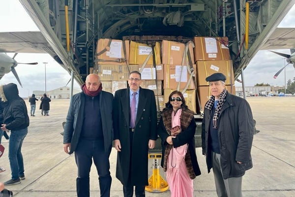 প্রধানমন্ত্রী শেখ হাসিনার নির্দেশনায় বাংলাদেশের মানবিক ত্রাণ সহায়তা প্যাকেজ শনিবার বাংলাদেশ বিমান বাহিনীর বিশেষ বিমান সি-১৩০জে সিরিয়ার দামেস্কে পৌঁছেছে।