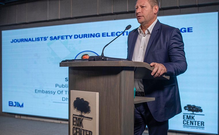 আসন্ন জাতীয় নির্বাচনে সাংবাদিকদের গুরুত্বপূর্ণ ভূমিকার স্বীকৃতি দিয়ে, এডওয়ার্ড এম কেনেডি (EMK) সেন্টার নির্বাচনী দায়িত্বপালনকালে নিরাপত্তা বিষয়ক একটি কর্মশালার আয়োজন করে বাংলাদেশী জার্নালিস্টস ইন ইন্টারন্যাশনাল মিডিয়ার (BJIM)।