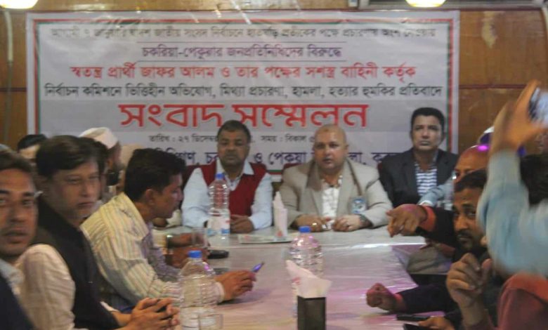 দ্বাদশ জাতীয় সংসদ নির্বাচনে কক্সবাজার-১ আসনে হাত ঘড়ি প্রতীকের পক্ষে প্রচারণায় অংশ নেওয়ায় চকরিয়া ও পেকুয়া উপজেলার জনপ্রতিনিধিদের বিরুদ্ধে স্বতন্ত্র প্রার্থী জাফর আলম ও তার পক্ষের অস্ত্রধারী ক্যাডার বাহিনী কর্তৃক নির্বাচন কমিশনে ভিত্তিহীন অভিযোগ, মিথ্যা প্রচারণা, হামলা ও হত্যার হুমকির প্রতিবাদে চকরিয়া এবং পেকুয়ার জনপ্রতিনিধিরা সংবাদ সম্মেলন করেছেন।