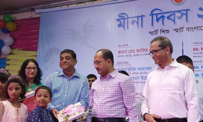 মীনা দিবস উদযাপন উপলক্ষে আজ সকালে রাজধানীর ঢাকা পিটিআই মিলনায়তনে ‘মীনা দিবসের’ উদ্বোধনী অনুষ্ঠান অনুষ্ঠিত হয়। এতে প্রধান অতিথি হিসেবে বক্তব্য রাখেন প্রাথমিক ও গণশিক্ষা সচিব ফরিদ আহাম্মদ।