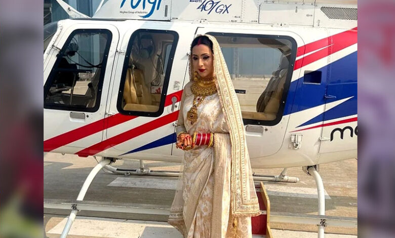 হেলিকপ্টারে চড়ে শ্বশুরবাড়িতে মিম