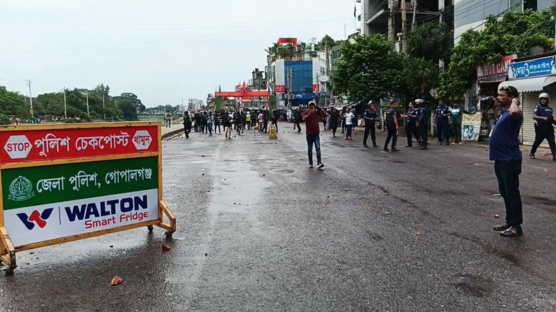 বিকাল পৌনে ৩টার দিকে শহরের পৌর পার্ক এলাকায় এই ঘটনা ঘটে। শহরের সমাবেশস্থল থেকে বের হওয়ার পথেই কেন্দ্রীয় নেতাদের বহনকারী গাড়িবহরের ওপর ব্যাপক ইটপাটকেল নিক্ষেপ করা হয়। এ সময় পুলিশ ও সেনাবাহিনীর সদস্যরা সাউন্ড গ্রেনেড ও ফাঁকা গুলি ছুড়ে পরিস্থিতি নিয়ন্ত্রণের চেষ্টা করেন। গুলিতে সাংবাদিকসহ আহত হয়েছেন ২০ জন। গুরুতর আহতদের গোপালগঞ্জ জেনারেল হাসপাতালে ভর্তি করা হয়েছে।