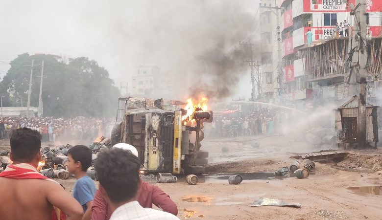 ট্রাক উল্টে একের পর এক সিলিন্ডার বিস্ফোরণ!